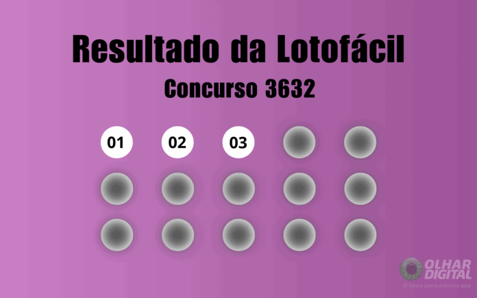 Os números sorteados da Lotofácil 3632 foram: 01 – 02 – 03 – 05 – 06 – 09 – 10 – 15 – 17 – 19 – 20 – 21 – 22 – 23 – 25.