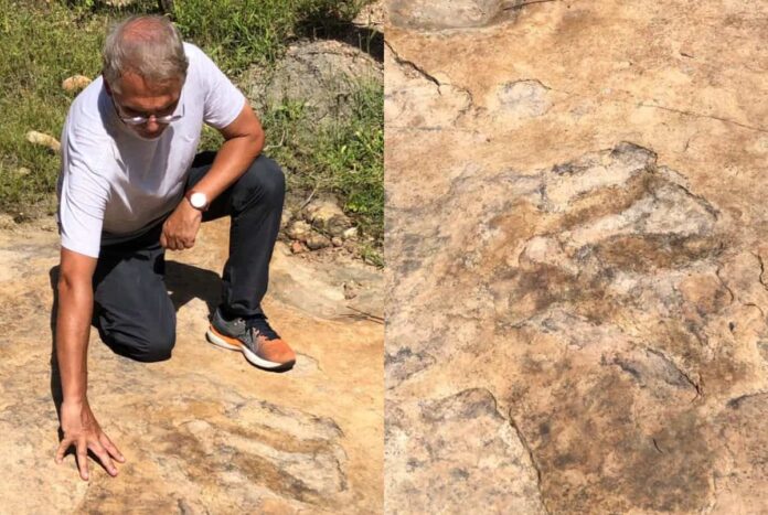 “Fazendo a revisão bibliográfica dos materiais, dos locais com pegadas já identificadas no Brasil, tanto no sul do Brasil quanto no centro-oeste do país, no sudeste, no norte e nordeste, nunca tinha sido identificada uma pegada tão grande de um dinossauro terópodes, com uma pegada tridáctila (três dedos) desse porte. Então, após a revisão bibliográfica dos registros que identificam pegadas de dinossauro, chegamos nessa conclusão”, disse o líder, Fabio Cortes, ao g1.