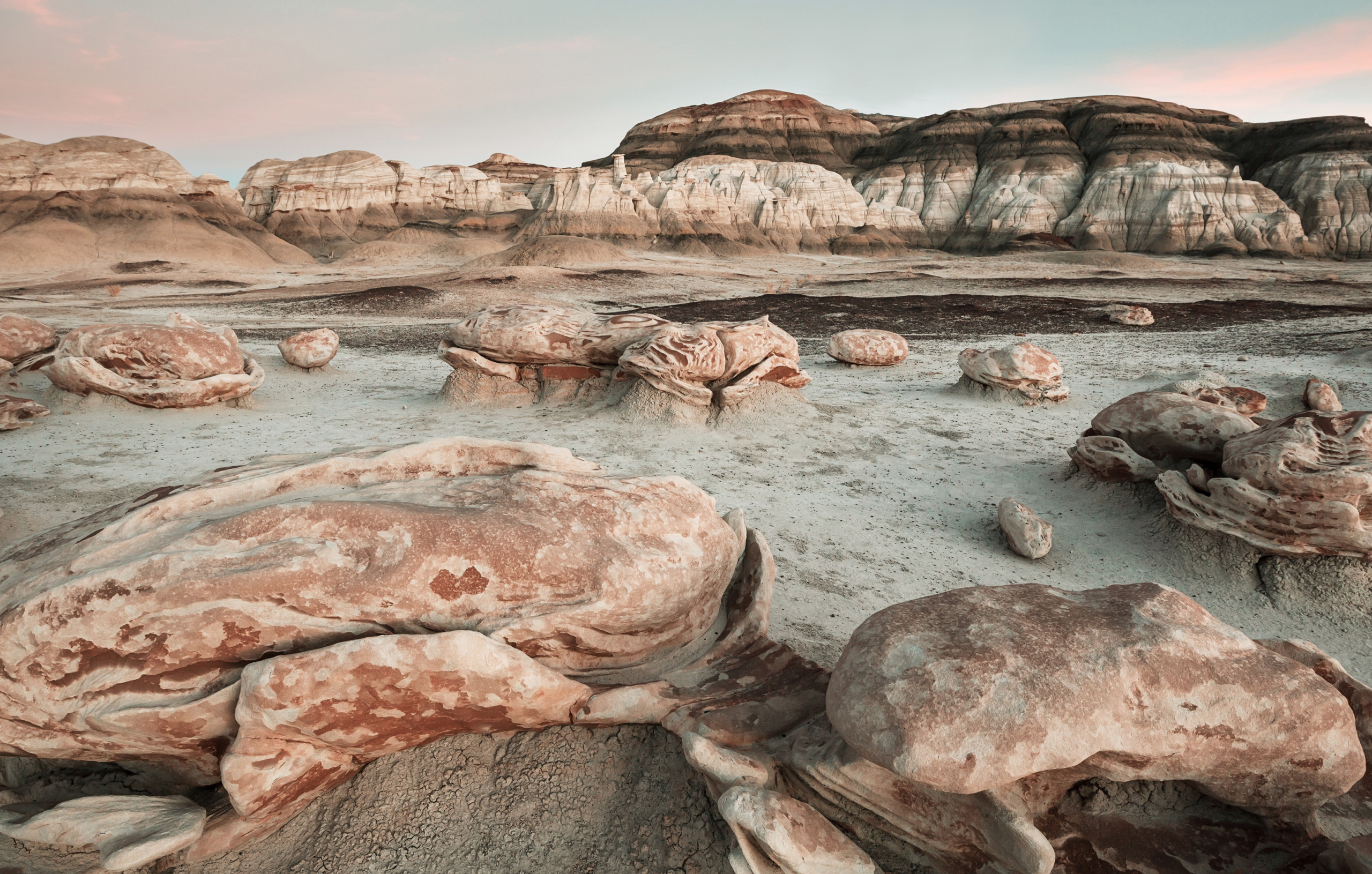 Uma região chamada Badlands de Bisti, localizada no noroeste do Novo México, EUA, é conhecida pelo apelido de “incubadora de ovos alienígenas”, devido ao aspecto visual de formações rochosas arredondadas e isoladas que se distribuem pelo terreno.